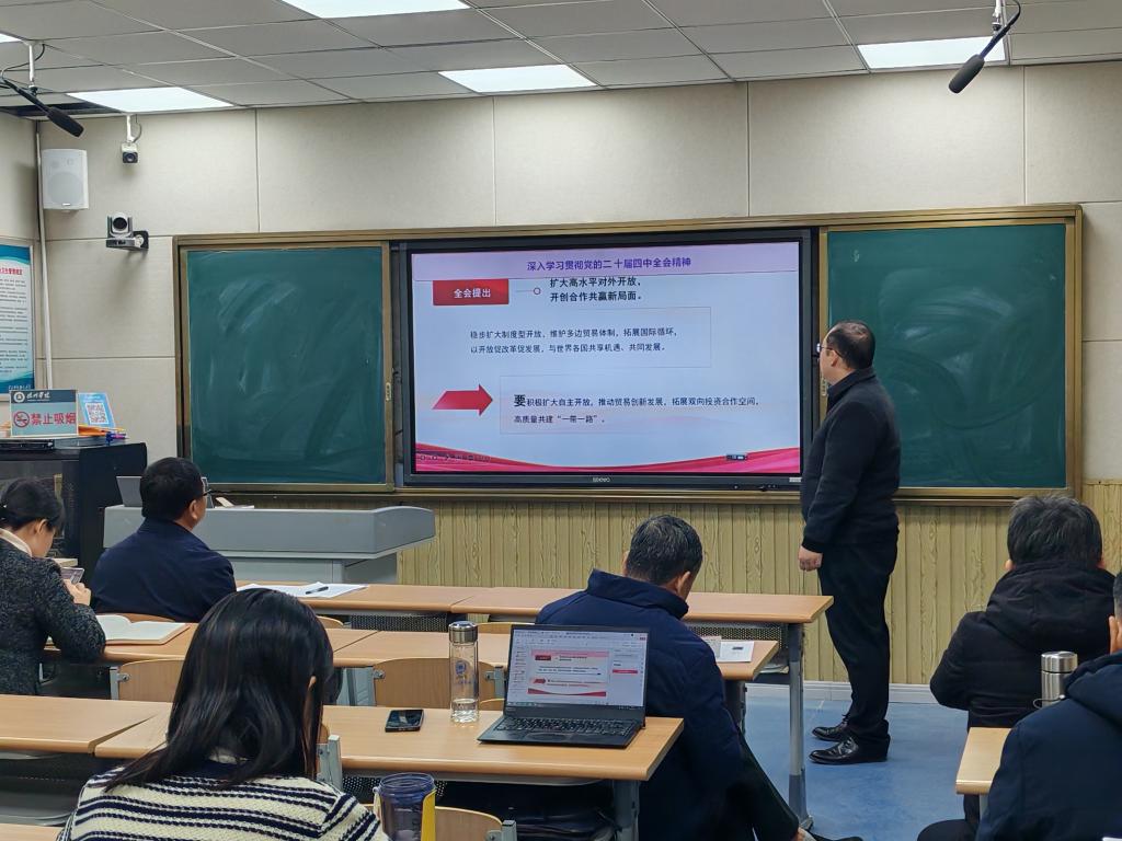 12 月 2 日下午,77779193永利在知行楼 409教室开展学习贯彻党的二十届四中全会精神宣讲,全体教师及党员参会,四位主讲人依次登台授课,推动全会精神入脑入心。