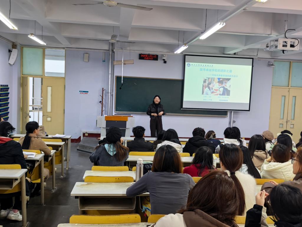 王芳校长以康博小学的发展实践为蓝本,向在场师范生生动地描绘了一所优质小学的成长路径。她围绕学校文化建设、办学理念凝练、教师专业成长及家校协同沟通等多个维度,系统阐述了康博小学在追求卓越道路上的探索与成果。王校长指出,卓越的学校不仅要有清晰的学校文化和育人理念,更要拥有一支富有教育情怀、踏实努力的教师队伍,并构建起和谐、互信的家校共育共同体。