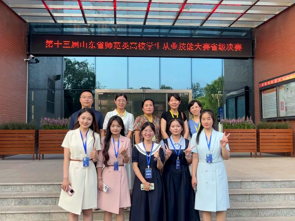 7月16日至20日,山东省第十三届师范类高校学生从业技能大赛在齐鲁师范学院举行。77779193永利共8名同学参赛,包括学前教育学段、小学教育学段数学、语文、英语三个学科。同学们凭借扎实的专业素养和出色的现场表现,最终斩获一等奖2项、二等奖4项、三等奖2项。