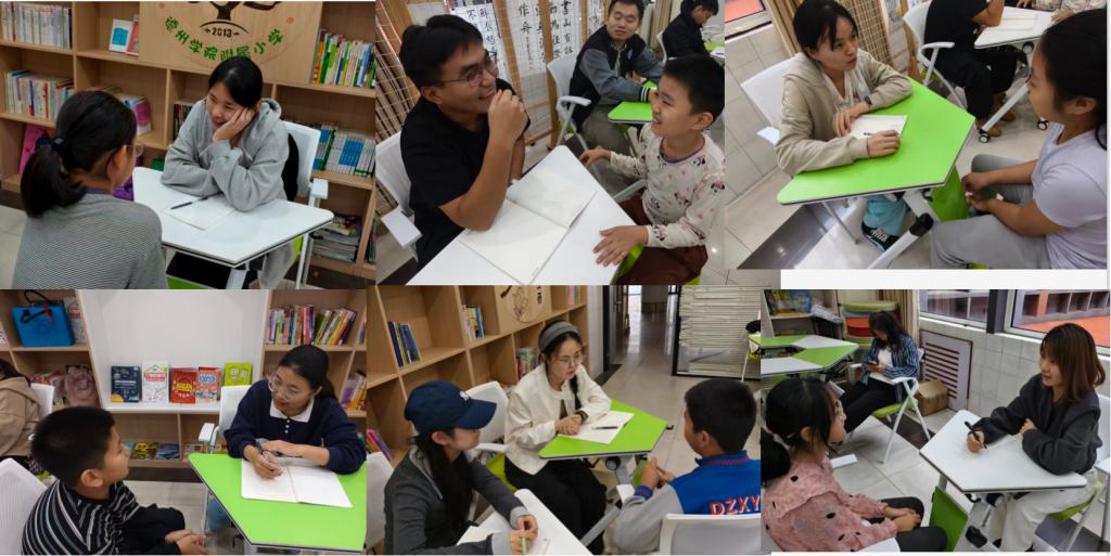 活动筹备阶段,分设8个心理倾听小组,每组10人,确保心理沟通交流的有效性。倾听主题聚焦小学生日常生活中的核心诉求,重点关注校园中小学生普遍存在的心理问题,涵盖学习困惑、品行养成、人际关系协调、情绪情感疏导及升学指导等关键领域。活动过程中,大学生运用心理辅导技巧,与小学生真诚交流,友好互动,既实现了心理知识的转化与应用,也为小学生搭建了安全表达、释放压力的平台。现场心理倾听活动之后,老师们立即组织大家进行“知行一程,研思半隅”心理沙龙活动,针对心理倾听活动中对小学生心理问题的认识、心理辅导技术的应用等关键点进行研讨交流,促进心理理论知识的有效深化。